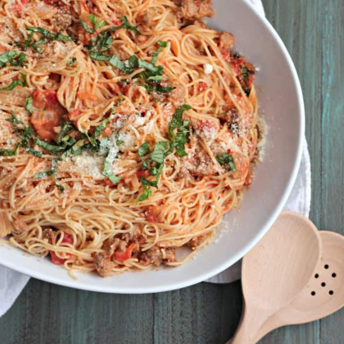 Italian Sausage & Peppers over Angel Hair